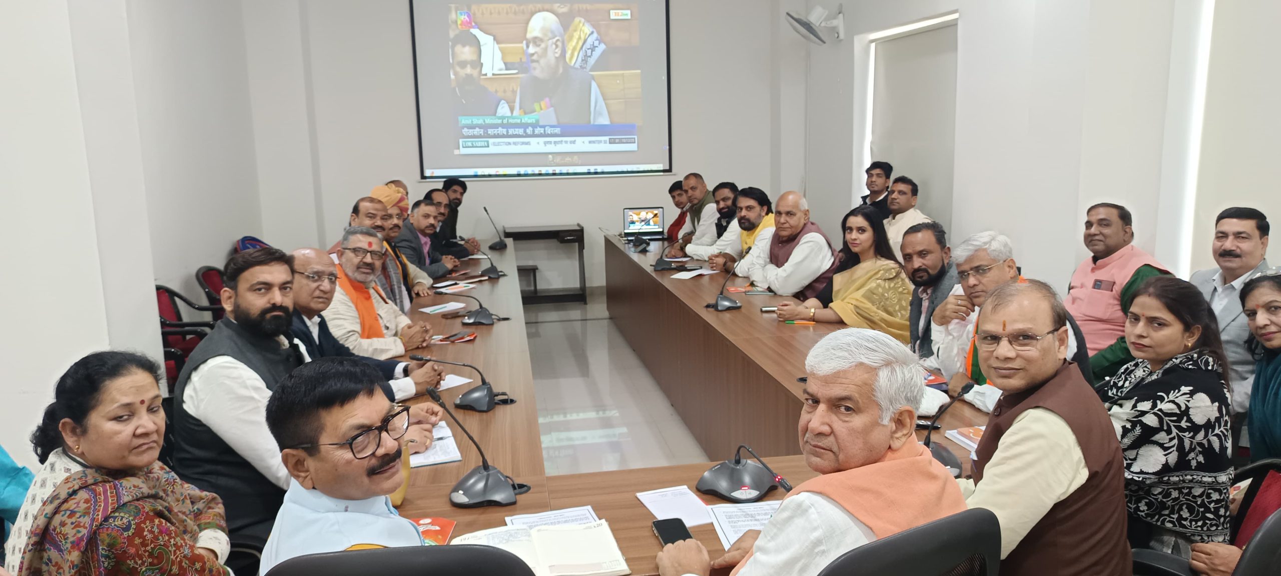 बैठक में गृह मंत्री अमित शाह के लोकसभा भाषण के प्रमुख अंश स्क्रीन पर दिखाए गए। प्रदेश मीडिया प्रभारी अरविंद सैनी ने सभी प्रवक्ताओं एवं पदाधिकारियों के समक्ष आगे की कार्ययोजना प्रस्तुत की। संगठन मंत्री फणिंद्र नाथ शर्मा और प्रदेश उपाध्यक्ष सतीश नांदल ने SIR और EVM के मुद्दे पर कांग्रेस द्वारा फैलाए जा रहे झूठ को उजागर करने का आह्वान किया।